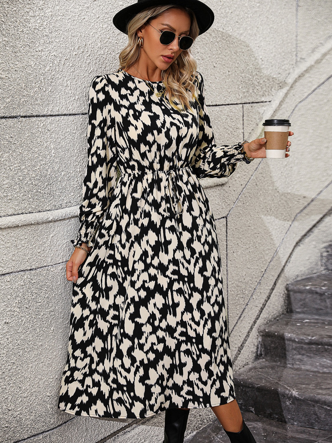 Leopard Long Sleeve Midi Dress